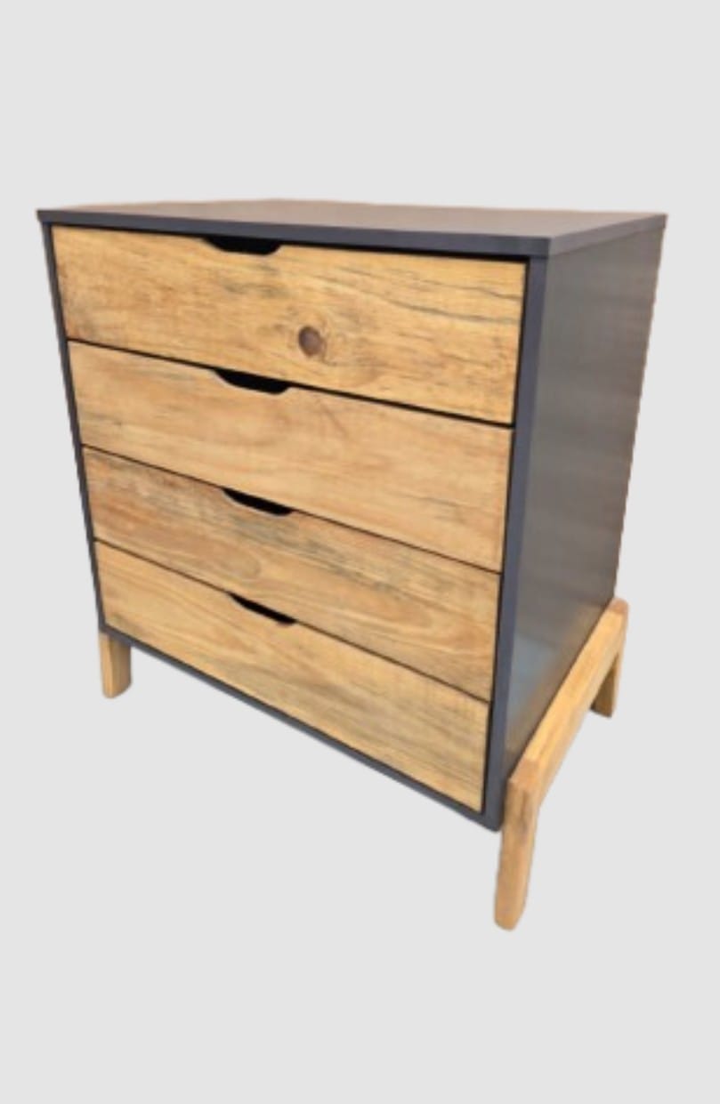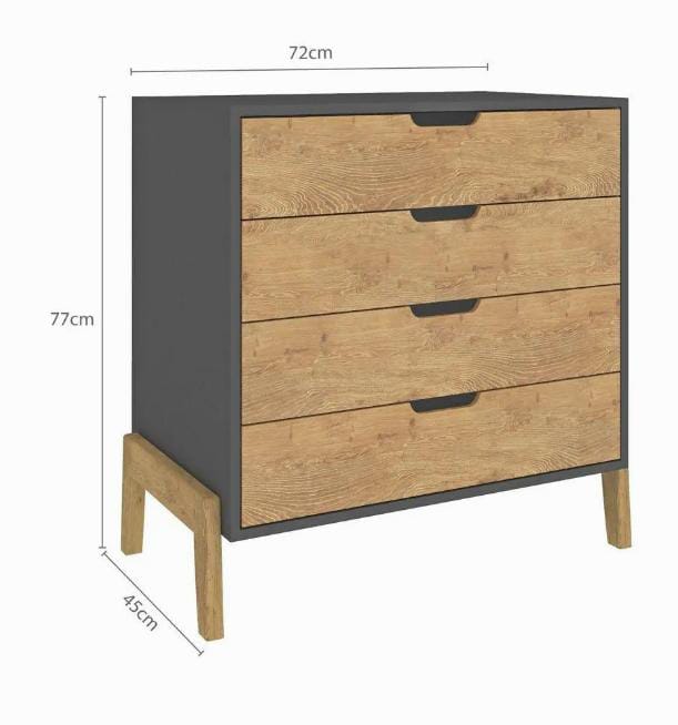 A Cômoda Retrô 4 Gavetas une design moderno com um toque clássico, ideal para compor quartos, salas ou escritórios. Seu acabamento combina o tom amadeirado das gavetas com a estrutura em cor escura, trazendo elegância e sofisticação para sua casa.