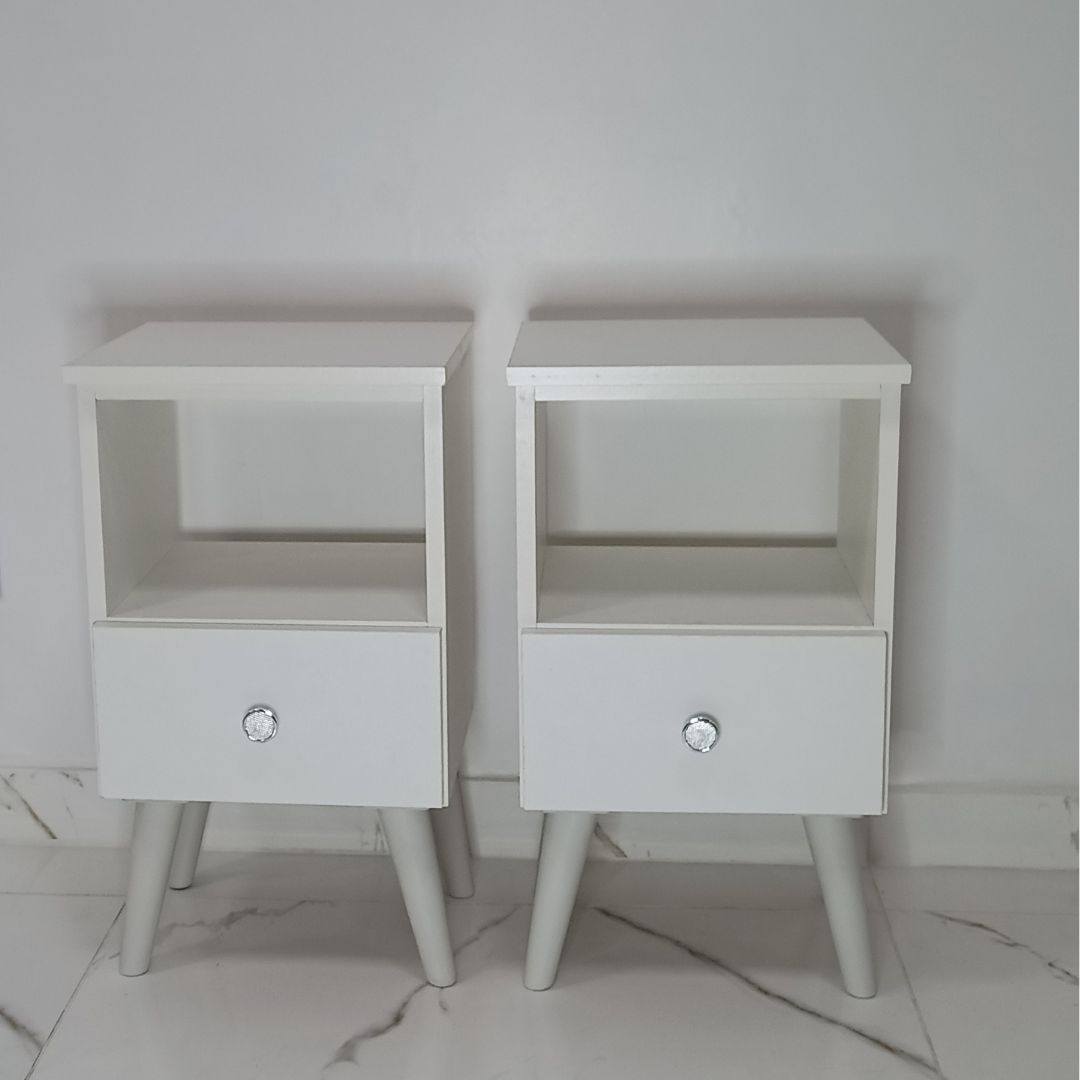 Mesa de Cabeceiras Retrô com Gaveta – Branco Fosco com Pés Palito