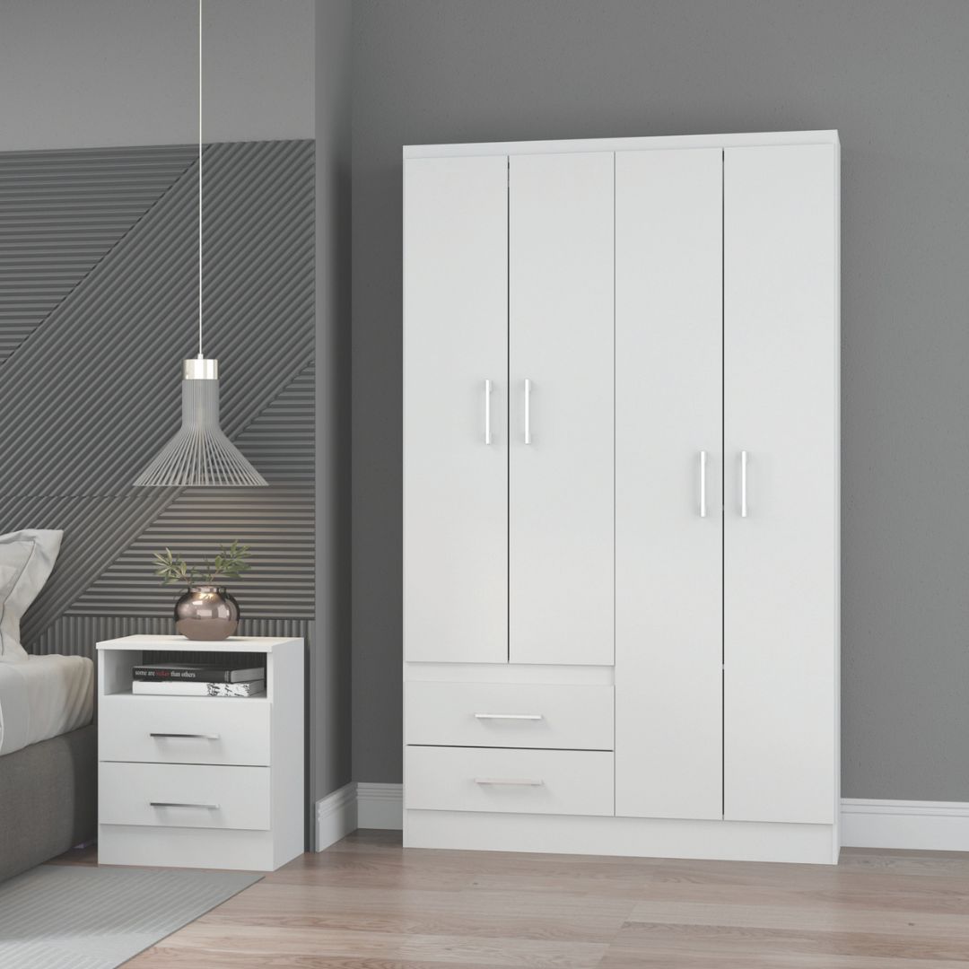 Roupeiro Gaya 4 Portas e 2 Gavetas – Branco